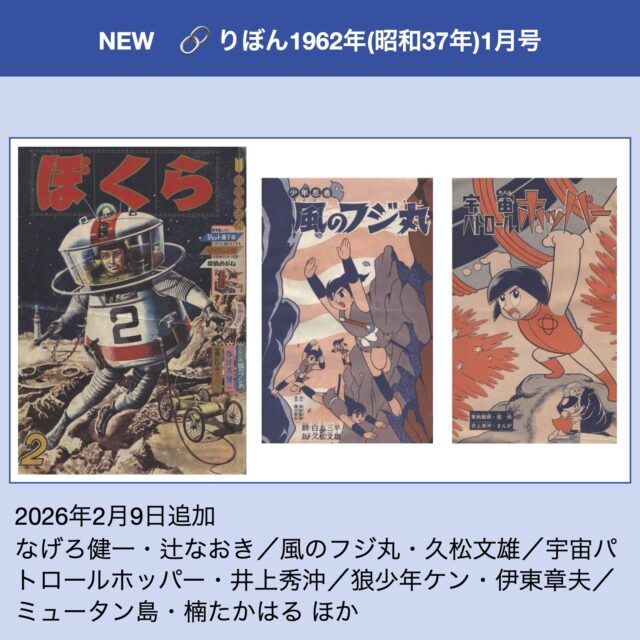 このホームページは、日本の漫画文化の礎を築いた、主に昭和三十年代に活躍した漫画家とその作品を時の流れに埋もれさせることなく、現代に語り継ぐことを目的として当時の漫画雑誌と作品を紹介しています。
