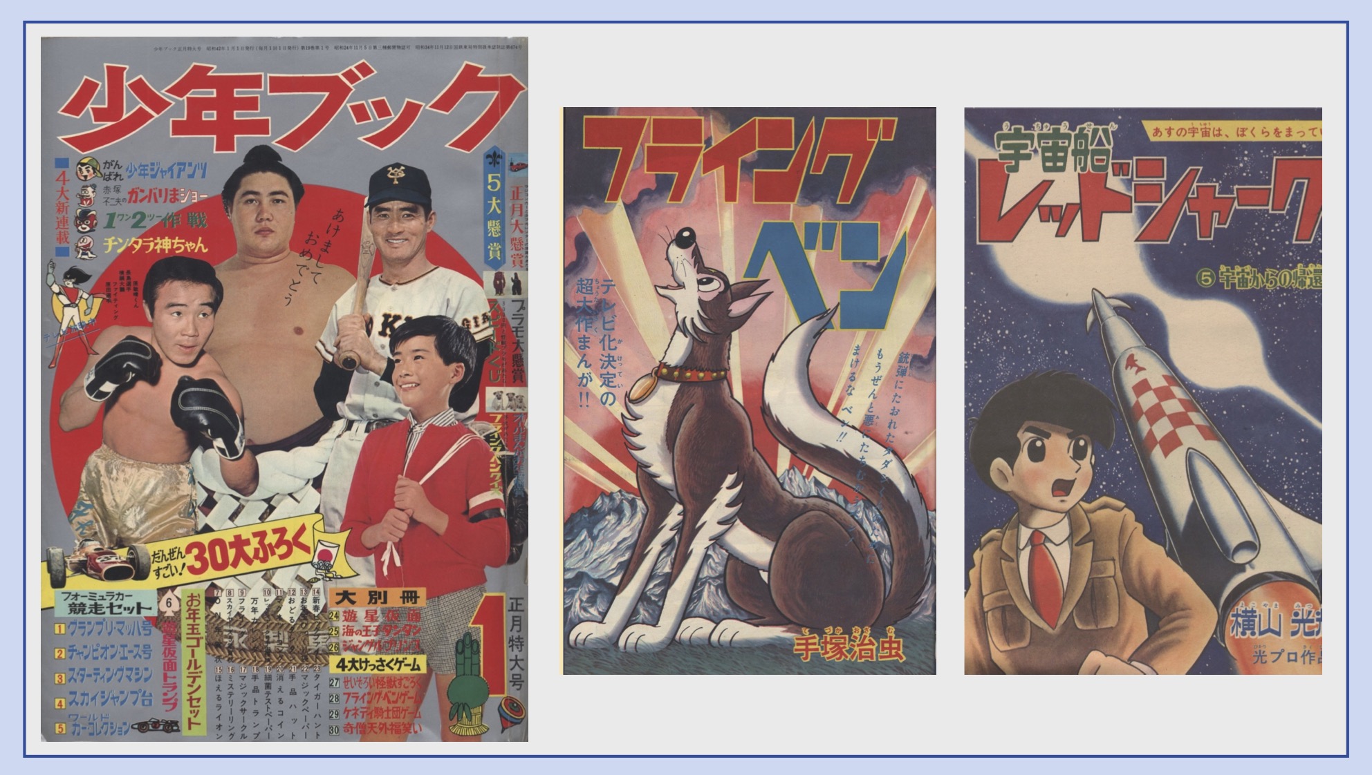 フライングベン・手塚治虫/宇宙船レッドシャーク・横山光輝/チンタラ神ちゃん・藤子不二雄/1★2作戦・貝ひろし/マッハGoGoGo・吉田竜夫 ほか