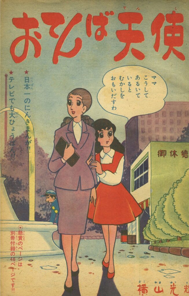 『りぼん』1955年8月(9月号)創刊。既刊の『少女ブック』の姉妹誌として創刊された幼女向け月刊誌。横山光輝「おてんば天使」1959年1月号 - 1962年3月号連載作は多くの読者の支持を得て、当時人気作の象徴でもあった本誌から別冊に続く形式での掲載も多く、テレビドラマ化もされた。『少女』休刊後、『りぼん』に発表の場を移した牧美也子「マキの口笛」1960年9月号 - 1963年4月号連載作もまた多くの読者の支持を得た。二大人気まんがの連載に加え、『少女ブック』で看板連載作を描いていたわたなべまさこも、この号の『りぼん』で「おかあさま」1961年4月号 - 62年12月号の連載を開始している。
