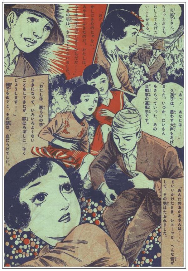 前号まで・・・幸子の兄、健次は幸子がおいかけてくるとはしらず、道の上に大岩をころがしてにげさる。あとからおいかけてきた幸子の車はものすごい音をたてて大岩にぶつかった。 やっと見つけたにいさん!その兄のために、白ゆりさんの上に、思いがけないさいなんがかかってきました。
