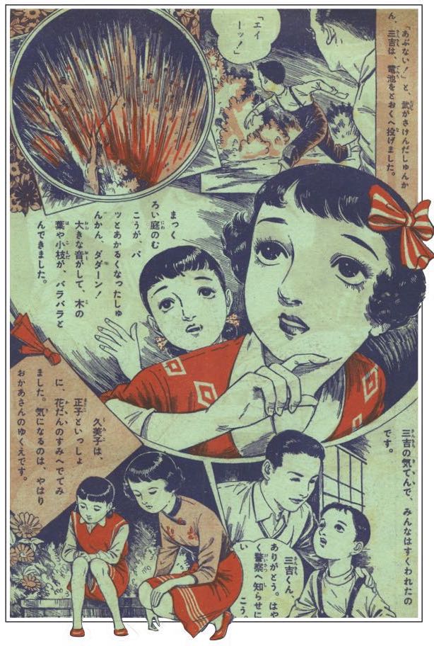 前号まで・・・久美子は、にいさんからダイヤをもらいましたが、それをねらう紅バラ女王たちのために、にいさんもおかあさんも、どこかへつれていかれました。そのうえ、いろいろおせわになっている武と正子の家も、ばくはつさせて、こなみじんにしてしまうとおどかされました。三吉は、そのことを知ると、げんかんのよびりんの電池があやしいと、はずしました。