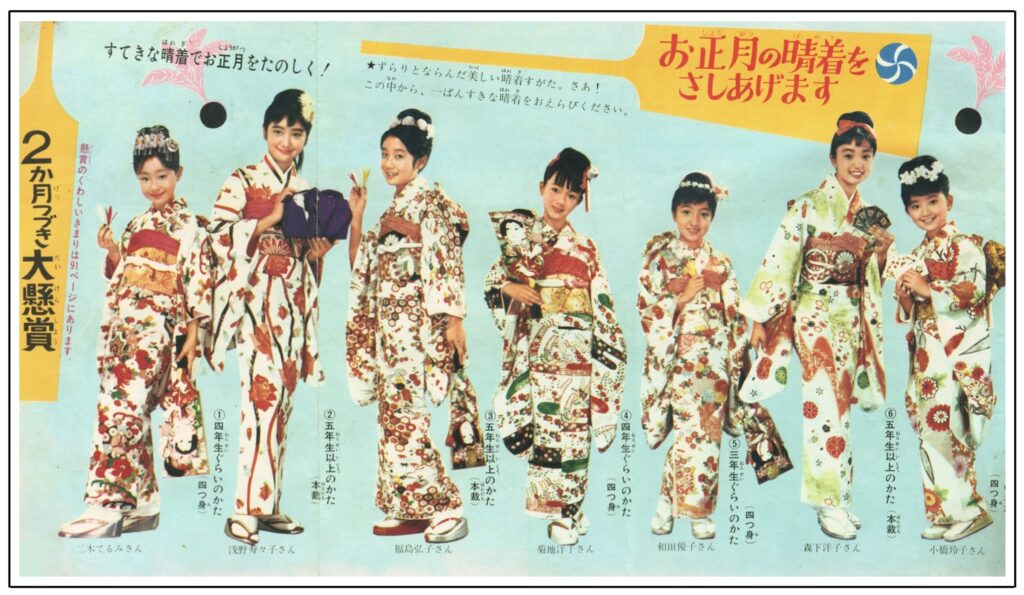 本号の懸賞付き口絵「お正月の晴れ着を差し上げます」では、少女モデルが着用した晴れ着が当選者に贈られている。