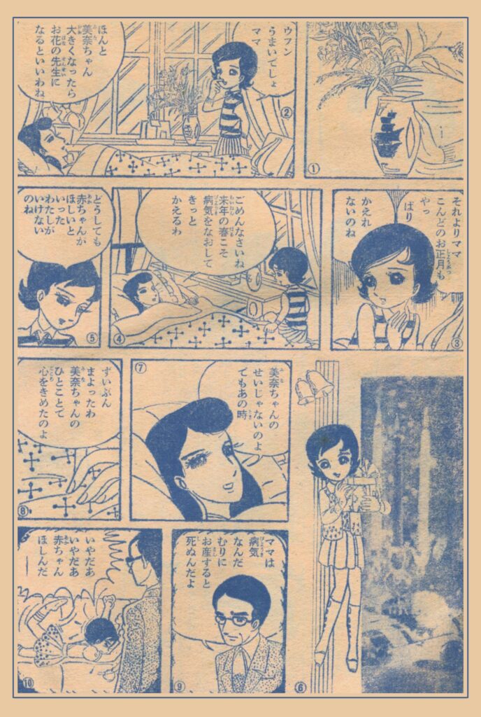 本号は終刊前年にあたる1月号であり、雑誌後期の動向を知るうえで興味深い一冊である。巻頭まんがには、わたなべまさこによる長期連載作「白馬の少女」が掲載されている。わたなべまさこはその後、新作「ミミとナナ」を発表し、同作は『週刊マーガレット』へと連載の場を移し、同誌創刊期を支える作品のひとつとなった。