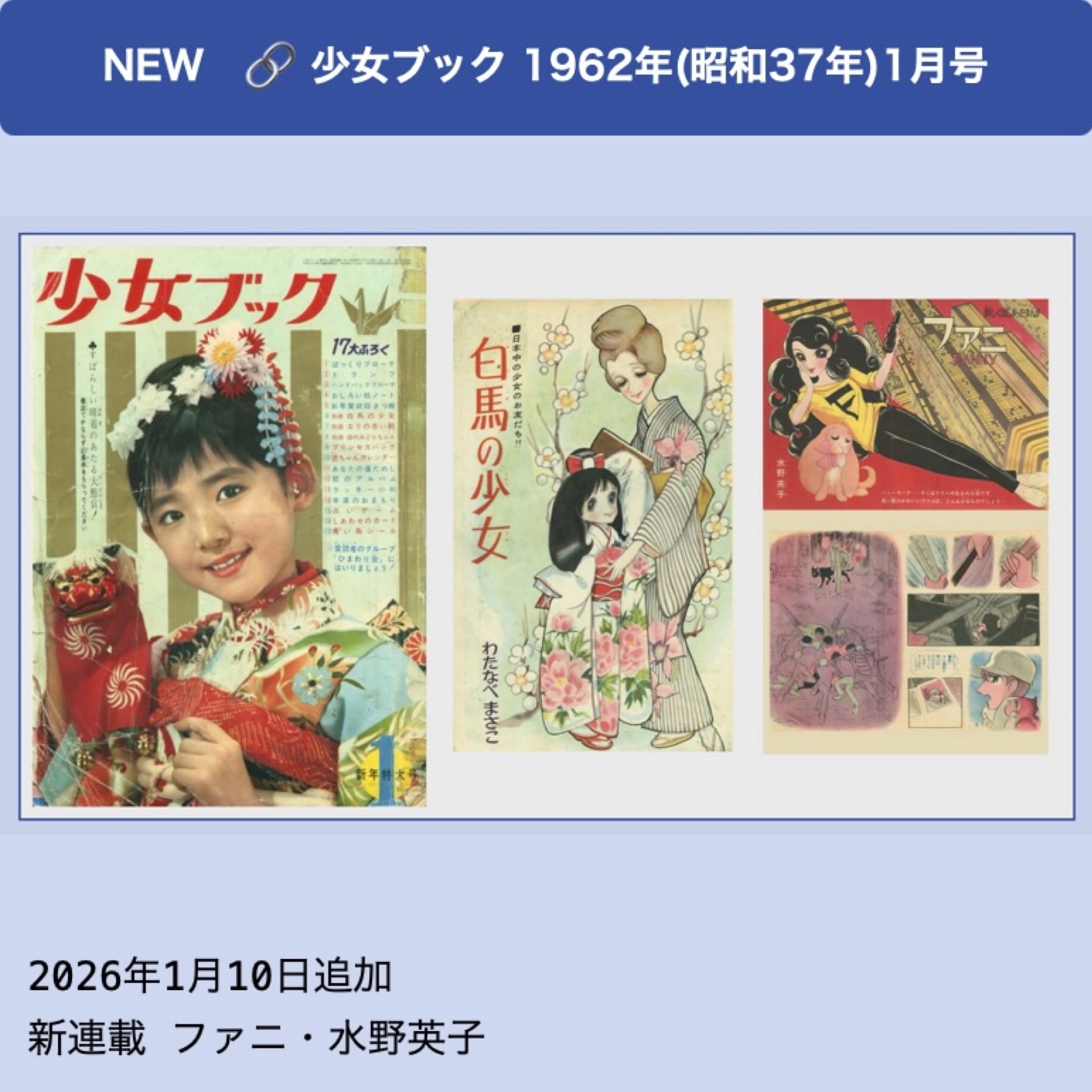 『少女ブック』1962年(昭和37年)1月号