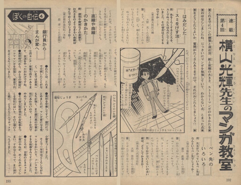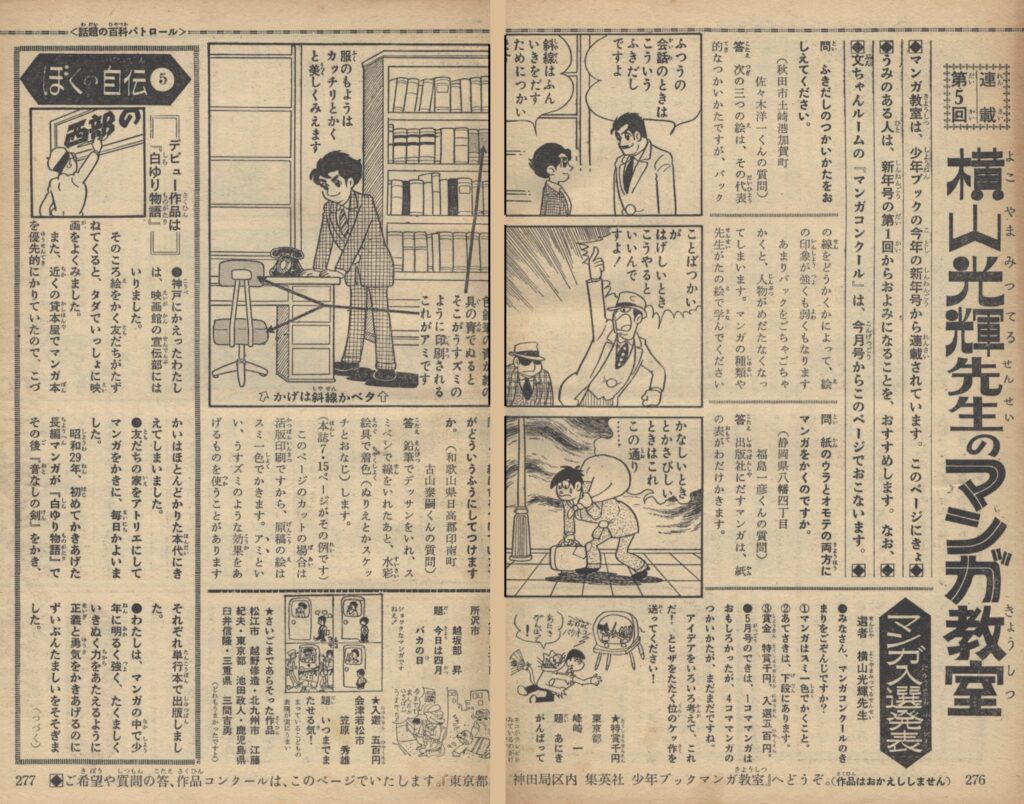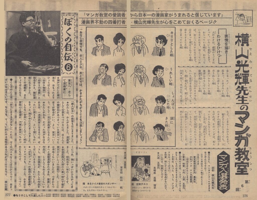 当時、漫画家による 『マンガ教室』 が単行本、別冊付録などの体裁で多く発表された。この号には横山光輝の 『マンガ教室』 連載形式の掲載がある。所持本3冊、連載第4回から第6回を紹介する。