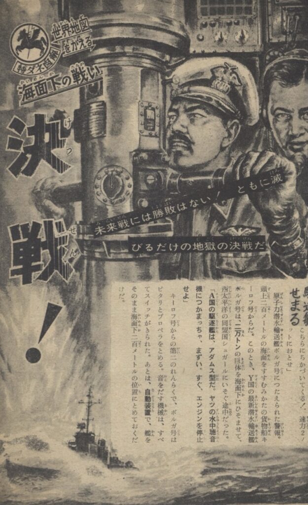 少年雑誌で少年たちから圧倒的な支持を得た小松崎茂が挿絵を描いた連載小説。小松崎茂 (1915年2月14日 - 2001年12月7日)は東京出身の画家・イラストレーターである。空想科学イラスト・戦記物・プラモデルの箱絵などで幅広く活躍した。